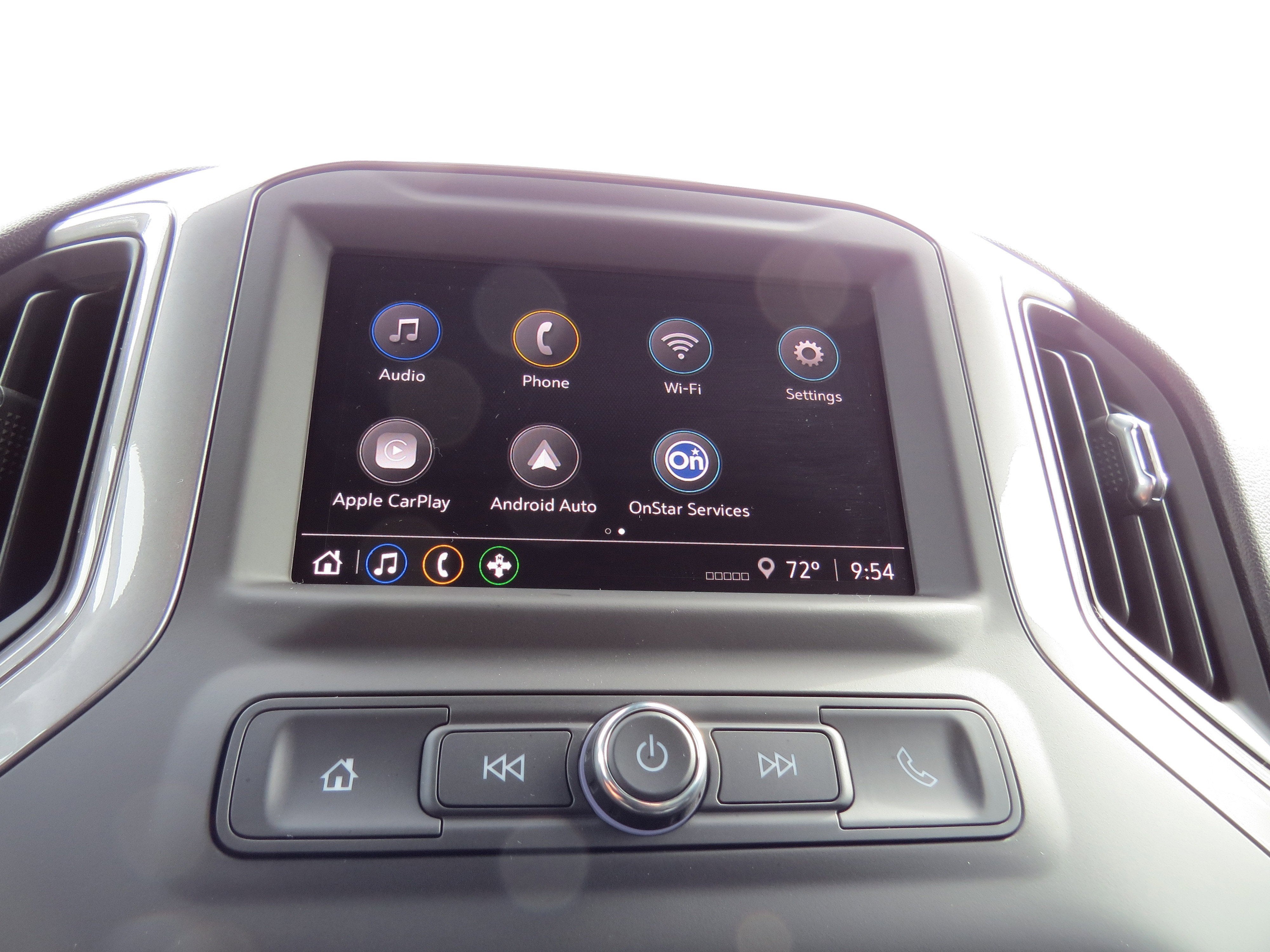 - Audio system, Chevrolet Infotainment 3 system, 7" diagonal HD color touchscreen, AM/FM stereo Bluetooth® audio streaming for 2 active devices, voice command pass-through to phone, Wireless Apple CarPlay and Wireless Android Auto compatibility (STD)